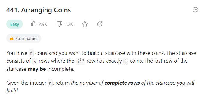 의역: n개의 코인을 가지고 있고 당신은 계단식으로 코인을 쌓고자 한다.