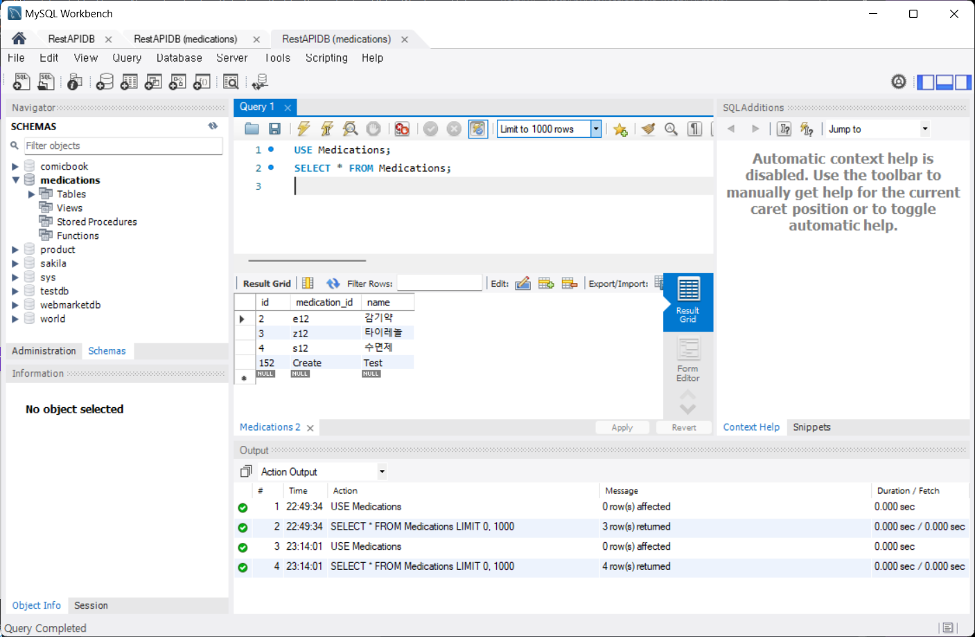 medications/id의 url을 통해 id 정보를 받아 데이터 베이스에서 해당 id의 스키마를 객체로 가져오도록 설계 (ORM)