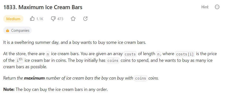 링크: https://leetcode.com/problems/maximum-ice-cream-bars/description/