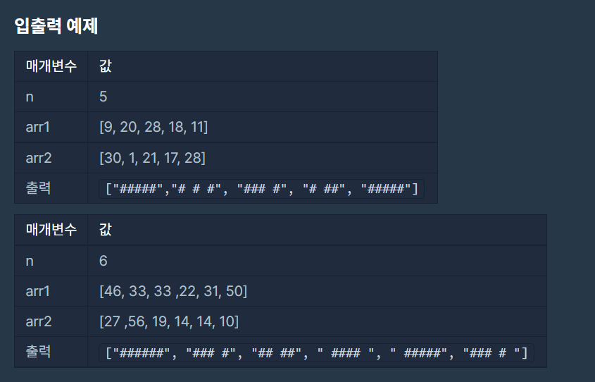 public String[] solution(int n, int[] arr1, int[] arr2) {