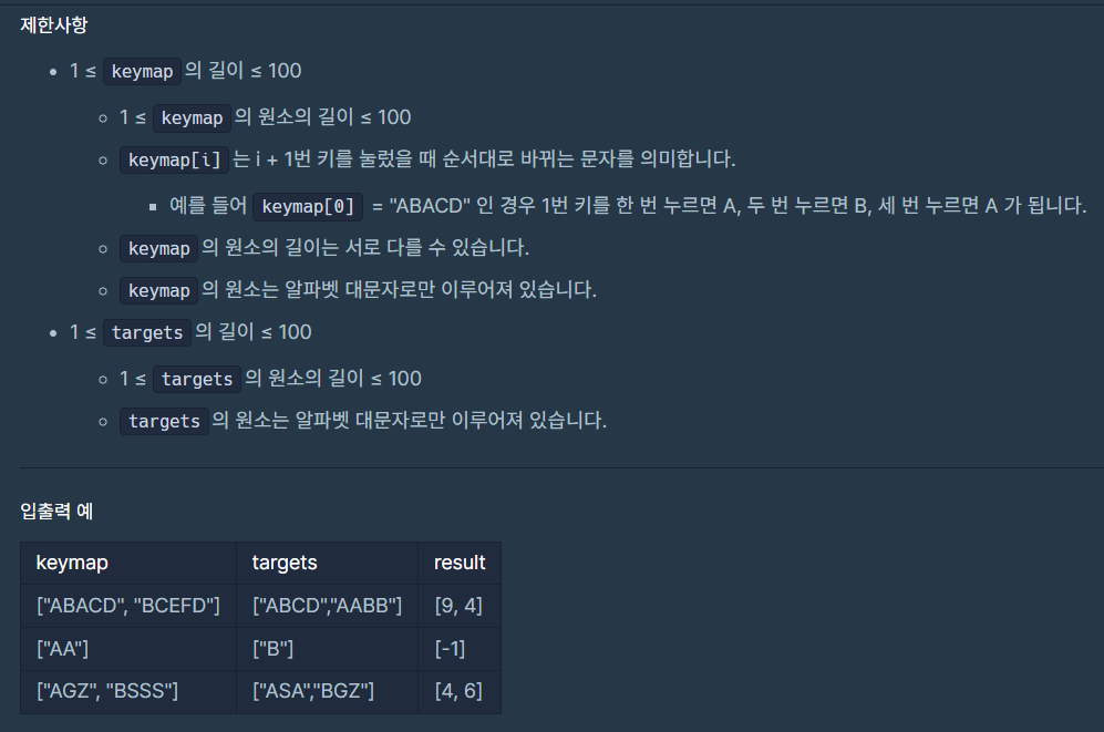 // 시간 복잡도 O(keymap.length()*keymap[n].length)