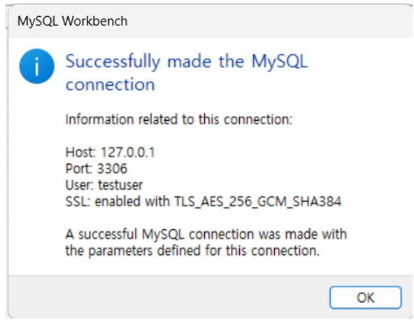 Test Connection 버튼을 통해 연결이 잘 되는지 확인!