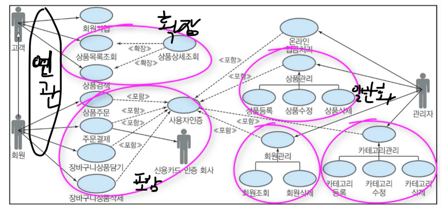 - 유사한 유스케이스를 모두 수용할 수 있는 관계 (상속 관계)