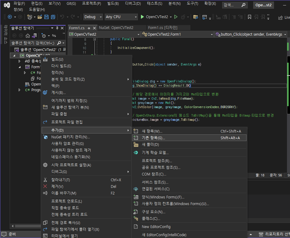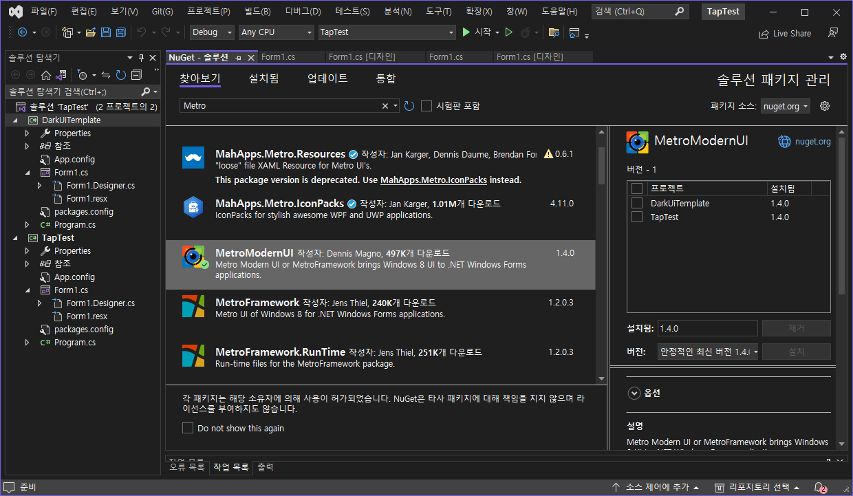 Nuget 패키지 관리를 통해 해당 패키지를 설치하고 도구 상자를 이용해 사용하면 되는 점은 같으나