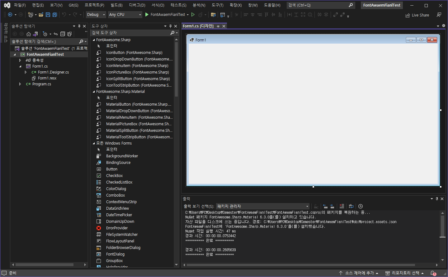 만약 실행 시 Program.cs 파일에서 new FontAwesome.Sharp가 인식이 안되어 사용이 불가능하다면