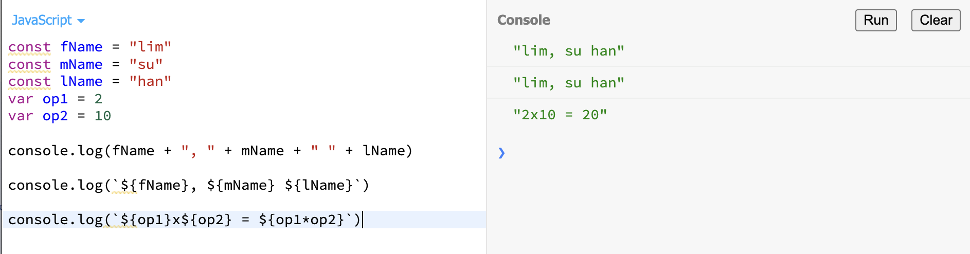 console.log(`Hello, I am ${this.name} from ${city}`);