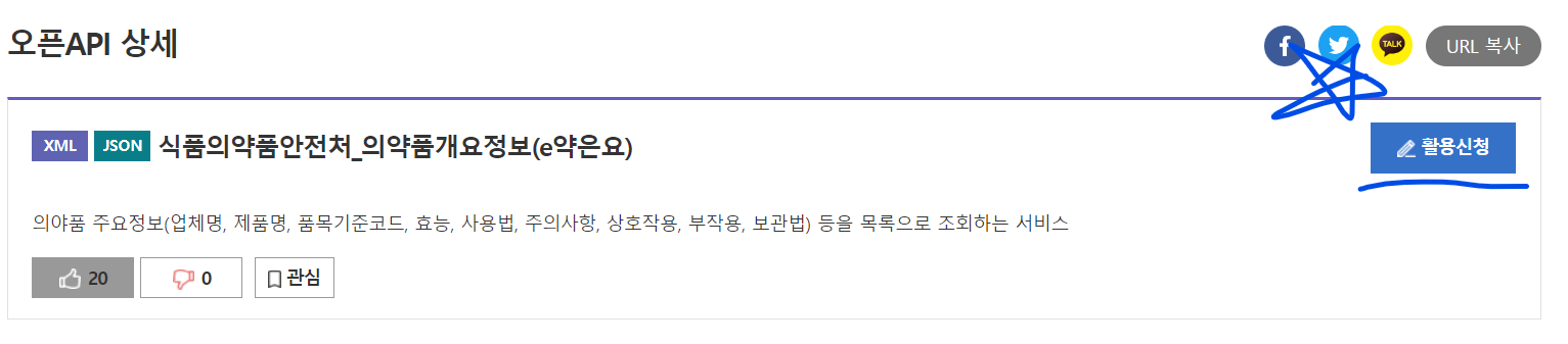 정말 간단하다. 사이트에 회원 가입 후 사용하길 희망하는 오픈 API에 활용신청 하여 API 키를 발급받으면 된다.