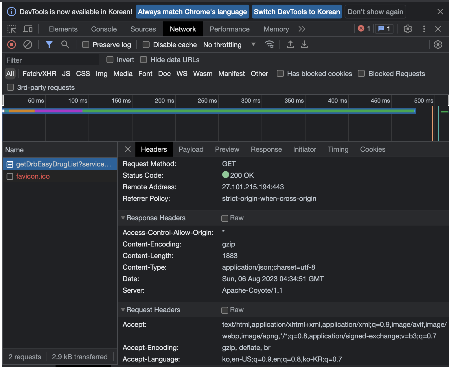 JSON Viwer 확장 플러그인을 사용하여 깔끔하게 표시되는 결과
