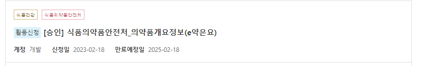 주의할 점이 있다면 대부분 API는 상시 허가로 되어 있어 신청하자마자 바로 사용할 수 있지만 몇몇 API와 데이터 같은 경우에는 신청 후 승인까지의 대기시간이 있을 수 있다는 점이다.