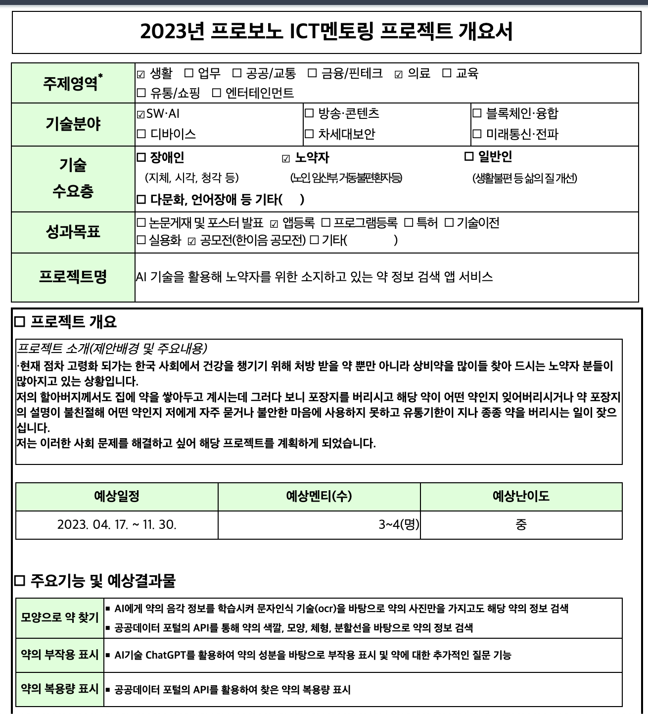 현재 내 주변에 처한 문제점을 해결하는 주제로 자리를 잡게 되었다. (이 부분이 계획서를 작성하는데 가장 도움이 된 점이라 생각한다)