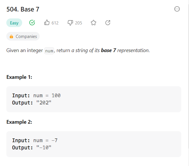 의역: 정수를 7진법으로 바꾼 문자열을 반환해라