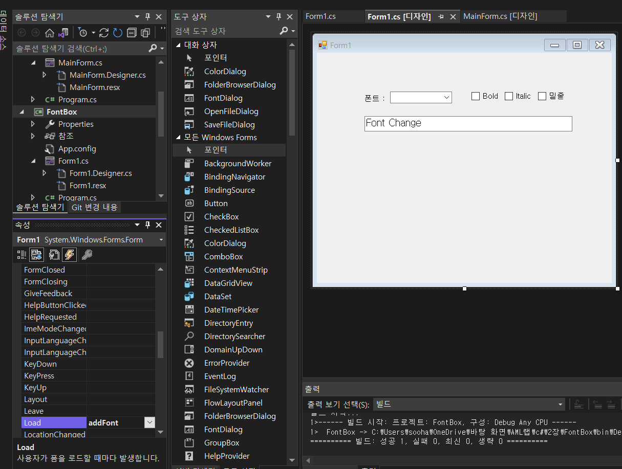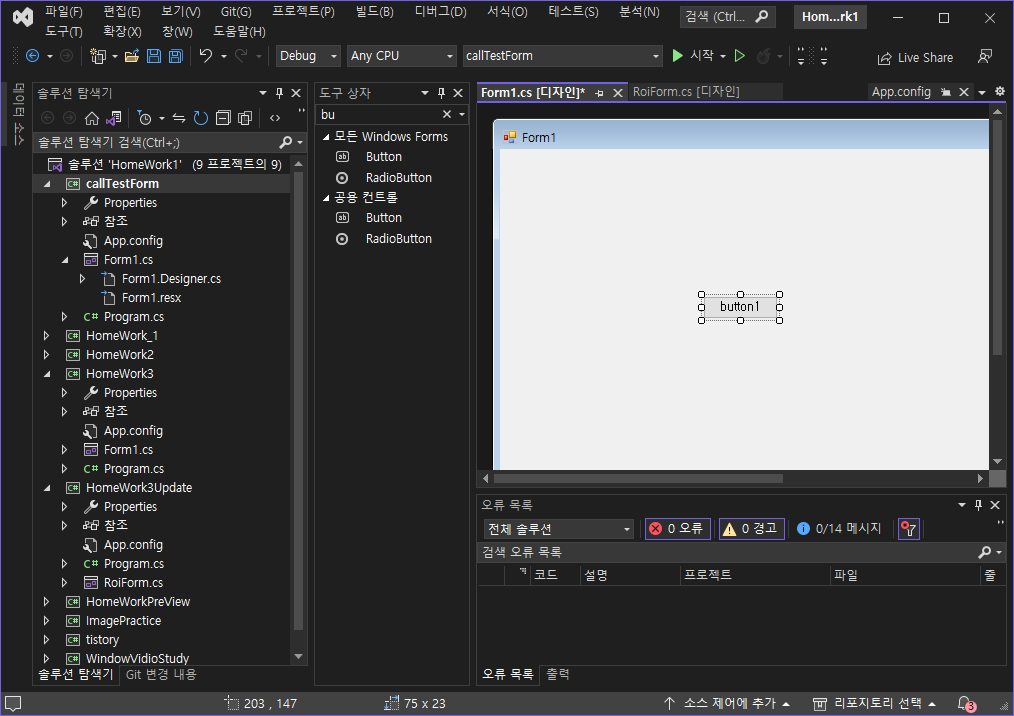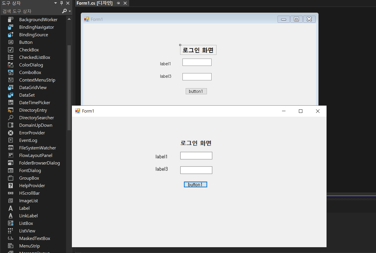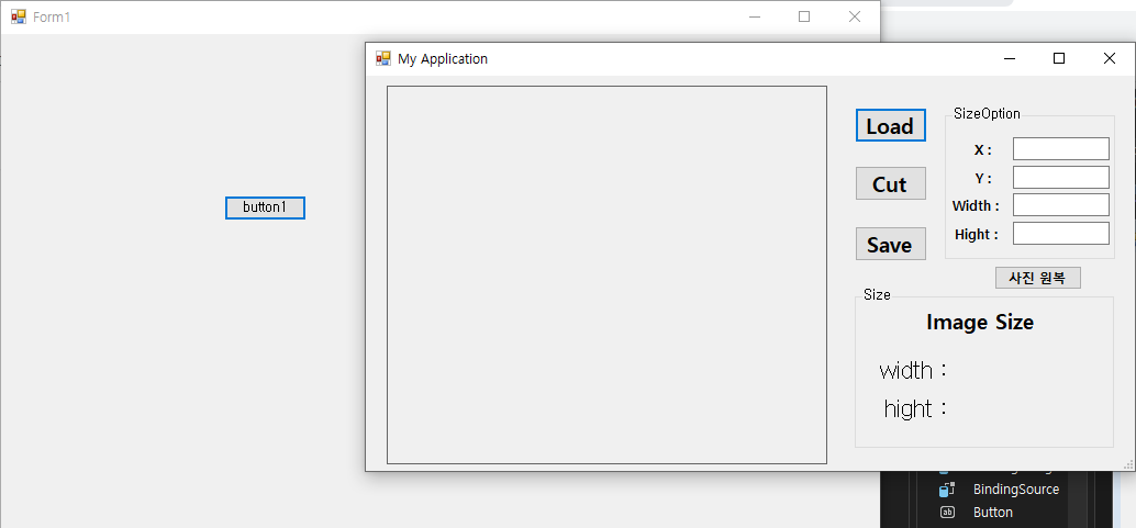 2. PictureBox, Button 컨트롤 가져다 두기