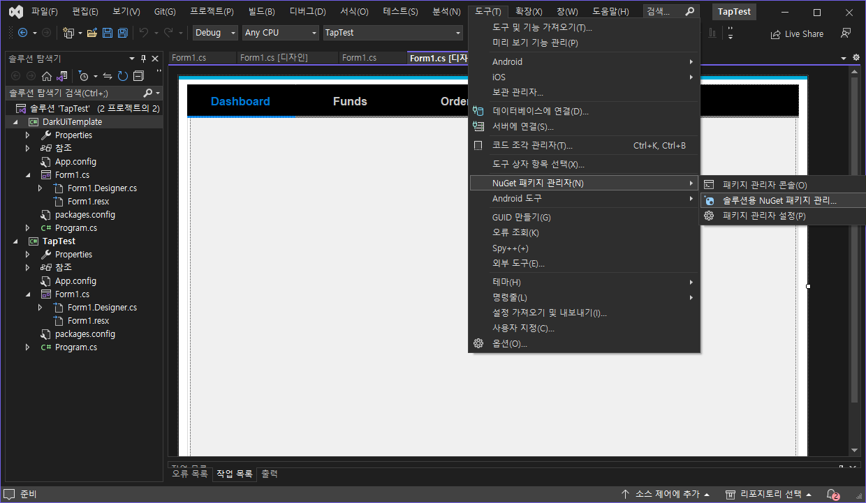 3. OpenCV 라이브러리 다운 (프로젝트 -> NuGet패키지 관리 -> 찾아보기 OpenCVSharp 검색)