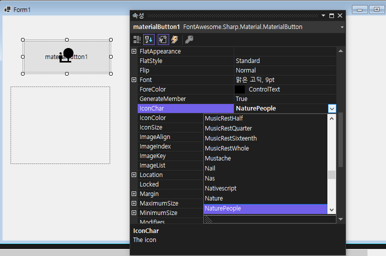 using FontAwesome.Sharp;를 Form 파일의 제일 위에 추가한 다음 실행하면 어느 정도 해결된다.