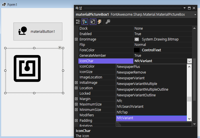 기본 Button 컨트롤에도 이미지를 넣을 수 있지만 버튼 크기에 맞추어 일일이 이미지 파일을 구해서 추가하는 것도 시간을 꽤나 잡아먹는데 해당 Package의 Button을 사용하면 빠르게 아이콘 버튼을 구현 할 수 있어 생산성을 높일 수 있다.