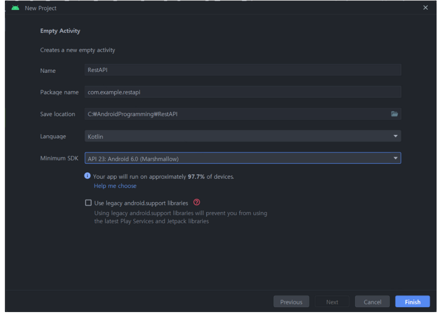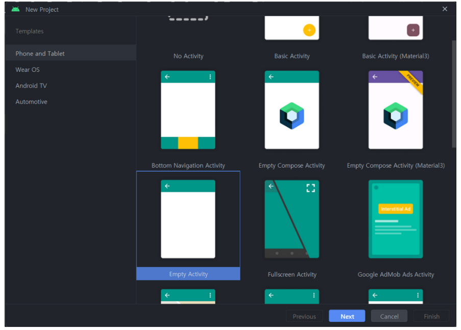 1. Empty Activity 프로젝트 생성